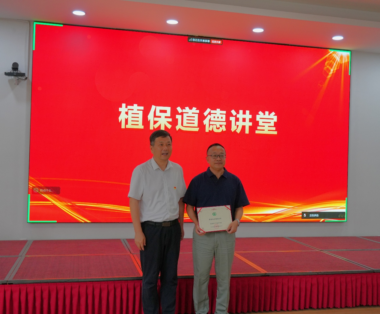 刘智峰教授以“深入贯彻中央八项规定精神 全面推动党的作风建设”为题做辅导报告,从“为什么”“是什么”“怎么做”三个方面深刻总结了党的作风建设的历史经验,将习近平总书记关于加强党的作风建设重要论述、毛泽东等老一辈革命家重视党的作风建设的历史和当前违反中央八项规定精神的典型案例相结合,深入浅出地解读中央八项规定精神的核心要义和具体内涵,深刻阐明了深入贯彻中央八项规定精神学习教育的重要意义,为党员干部进一步深入学习贯彻中央八项规定精神提供了有益指导。陆宴辉为刘智峰教授颁发植保道德讲堂演讲嘉宾证书,并合影留念。