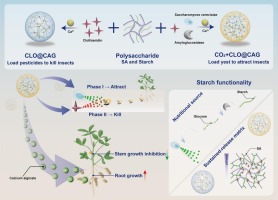 due to the concealed behaviors of subterranean pests, the application of insecticides faces numerous challenges. this study presents a novel attract-and-kill strategy that exploits subterranean pests’ reliance on co2as a cue for food location. a calcium alginate gel bead system (co2 clo@cag) was developed, combiningsaccharomyces cerevisiaeand clothianidin (clo) for synchronized release of both co2and clo. the beads continuously release co2for at least 35days, establishing a co2gradient similar to that formed by plant roots. additionally, starch was incorporated into the gel matrix to improve its sustained-release properties and stabilize clo release under varying ph levels. attraction tests confirmed that co2 clo@cag beads effectively attracted grubs within a 20cm radius. in indoor attract-and-kill experiments, the beads exhibited a substantially greater attraction to grubs compared to peanut seedlings, and all grubs attracted to the beads died from poisoning within 3days. moreover, the beads effectively mitigated the phytotoxicity of clo on peanut seedlings, alleviating its negative impact on stem growth and significantly promoting root development. field trials demonstrated a pest control effectiveness of 86.05%, which was significantly higher than the 62.79% effectiveness of commercial clo granules. biocompatibility testing with 8 other commercial pesticides showed compatibility with 6 of them, further validating the universal encapsulation capacity of the polysaccharide carrier and its ability to co-encapsulate various pesticides. this study underscores the potential of co2 clo@cag as an efficient and sustainable solution for targeted subterranean pest management.