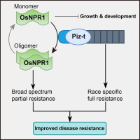 plants have developed a set of defense mechanisms against pathogen infection. basal immunity provides broad-spectrum resistance (bsr) but weak resistance to various pathogens, while resistance (r) gene-mediated effector-triggered immunity (eti) confers strong but race-specific resistance to limited pathogens. salicylic acid (sa) is a key plant immune hormone, and its receptor, the nonexpressor of pathogenesis-related genes 1 (npr1), is a positive regulator of plant basal immunity. although overexpression ofnpr1enhances immunity in various crops, these overexpression plants showed growth defects and yield losses, posing challenges for the application ofnpr1in crop improvement.rgene-mediated eti is widely used in molecular breeding. for example, ricergenespi9,piz-t, andpigmare important breeding resources with bsr to manymagnaporthe oryzaeisolates and have been incorporated in elite rice varieties. however, isolates in the paddy field are often a mixed population, and in this complex environment,rgene-mediated resistance often lacks durability and broad-spectrum efficacy. therefore, how to coordinate the two immune systems becomes a bottleneck in improving crop resistance.