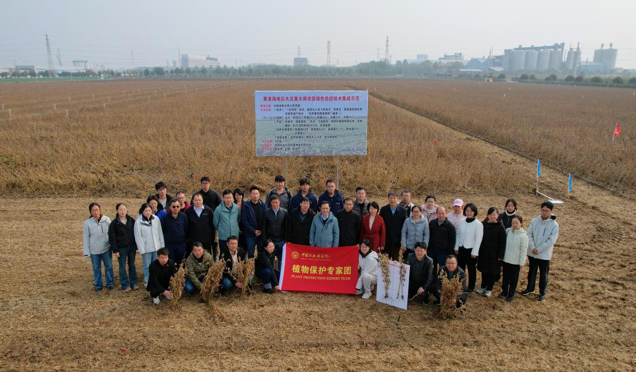 由中国农业科学院植物保护专家团主办的“大豆重大病虫草害绿色防控技术与新品种观摩交流会”在河南新乡试验基地举行。针对黄淮海区域夏大豆病虫害发生特点,在新乡开展植保所自研绿色防控新技术新产品集成示范,集中展示以“良种、良法、良机、良技”为核心的黄淮海夏大豆全程绿色防控技术体系,这套“绿色方案”为大豆单产提升注入强劲动力,为保障国家粮食安全提供技术保障。全国农业技术推广服务中心朱晓明高级农艺师、中国农业科学院成果转化局科技推广处处长张银定、河南省植保植检站站长张国彦等多位领导专家到场观摩并参与研讨。