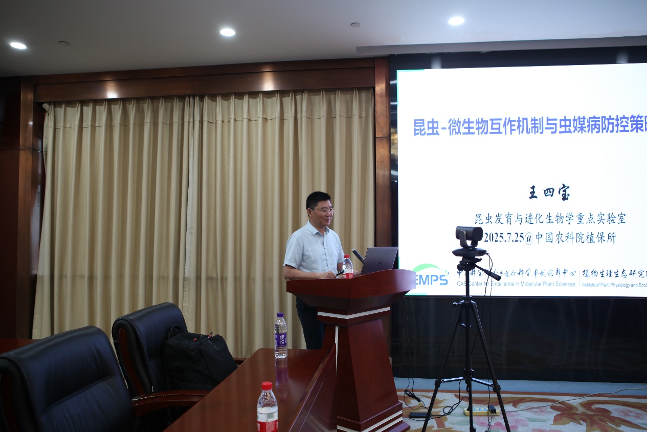 7月25日,中国农业科学院植物保护研究所、植物病虫害综合治理全国重点实验室和new plant protection期刊编辑部共同主办植保前沿论坛,论坛邀请中国科学院分子植物科学卓越创新中心王四宝研究员做了题为“昆虫-微生物互作机制与虫媒病防控策略研究”的学术报告。论坛由植保所副所长张杰主持,专家学者通过现场研讨与直播形式参与交流,其中现场有所内职工、博士后及研究生60余人参加,线上2400余人次观看。