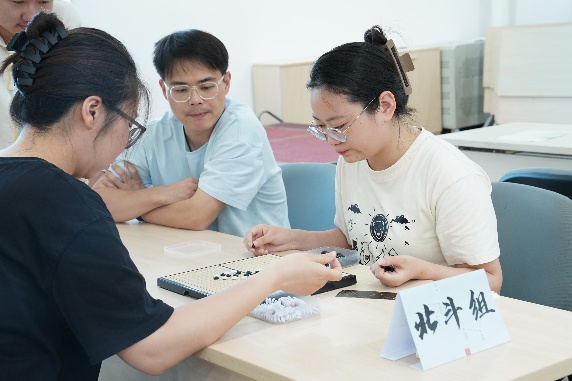 本届比赛由研究生会策划举办,广大学子积极响应,共有40余人报名参赛。比赛采用无禁手规则,实行积分循环制,分为小组赛和淘汰赛两个阶段。比赛中,参赛选手们沉着思考,灵活应对,方寸之间,你攻我守,在棋盘上呈现出“龙争虎斗”的局面。每一组对决都是实力交锋,每一次落子都充满着果断和自信。经过近3个小时的激烈角逐,最终2023级博士生许科亚荣获冠军,2024级硕士生吴瑞雪、2022级博士生卢若滨分获亚军和季军。随后,举办方还特邀上届冠军与本届冠军对弈,为比赛划上了圆满句号。